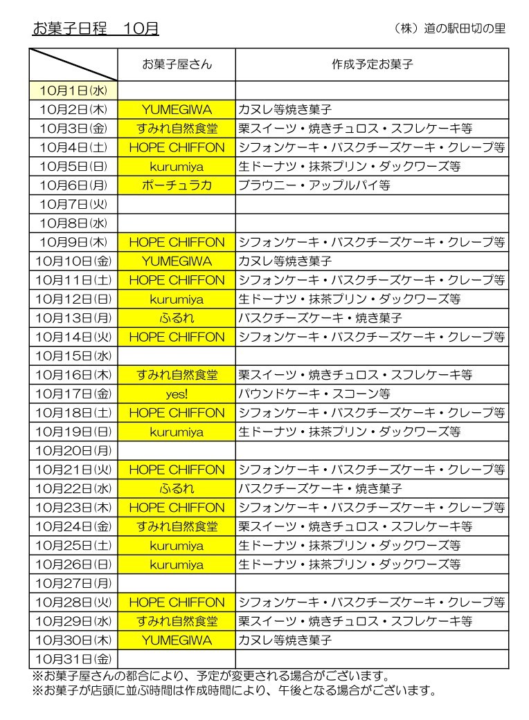 自慢のお菓子を作りたい!という地元の生産者が集まり ”それぞれの自慢のお菓子を田切の里で作りその場で販売する” をコンセプトに生産者が日替わりで様々なお菓子を販売するコーナーです。